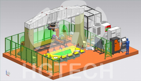 特點(diǎn):采用機(jī)器人焊接配備手工夾具的方式,減少人的干預(yù);自動(dòng)化程度高,焊接效率高。
